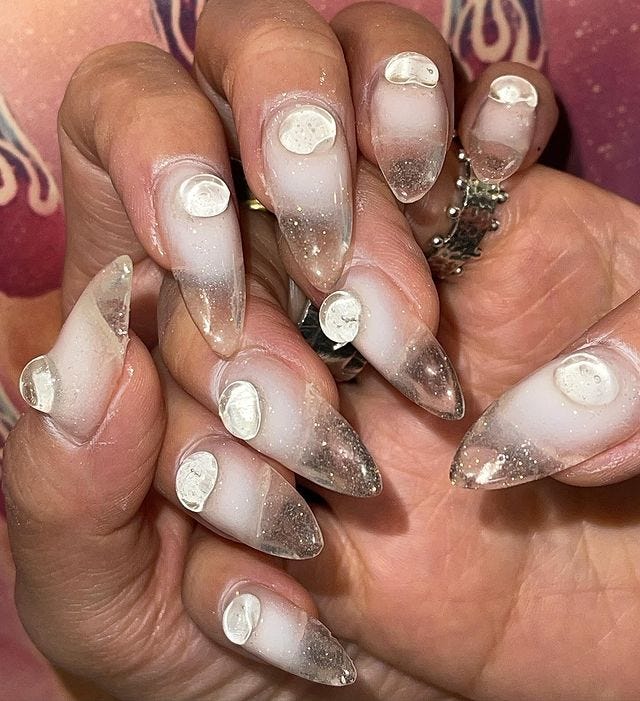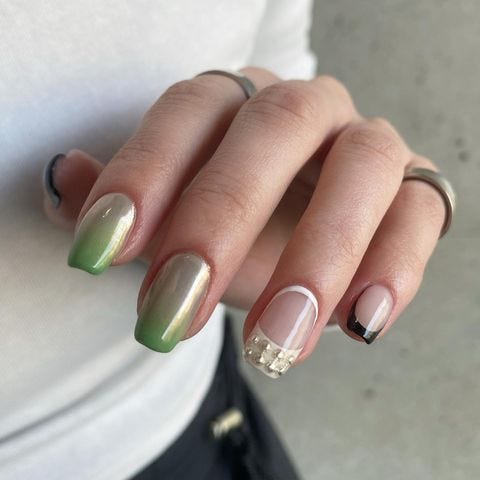 Nail art accounts are by far my favorite to follow on the platform. My favorites? @nail.sucre, @nana_nanail, @nailbandida, and @phreshnailss are all great if you’re looking for funky minimalism. My birthday is around the corner, and these are the designs I’m drawn to — neutral/natural colors, hints of shine, not glitter, and subtle embellishments.